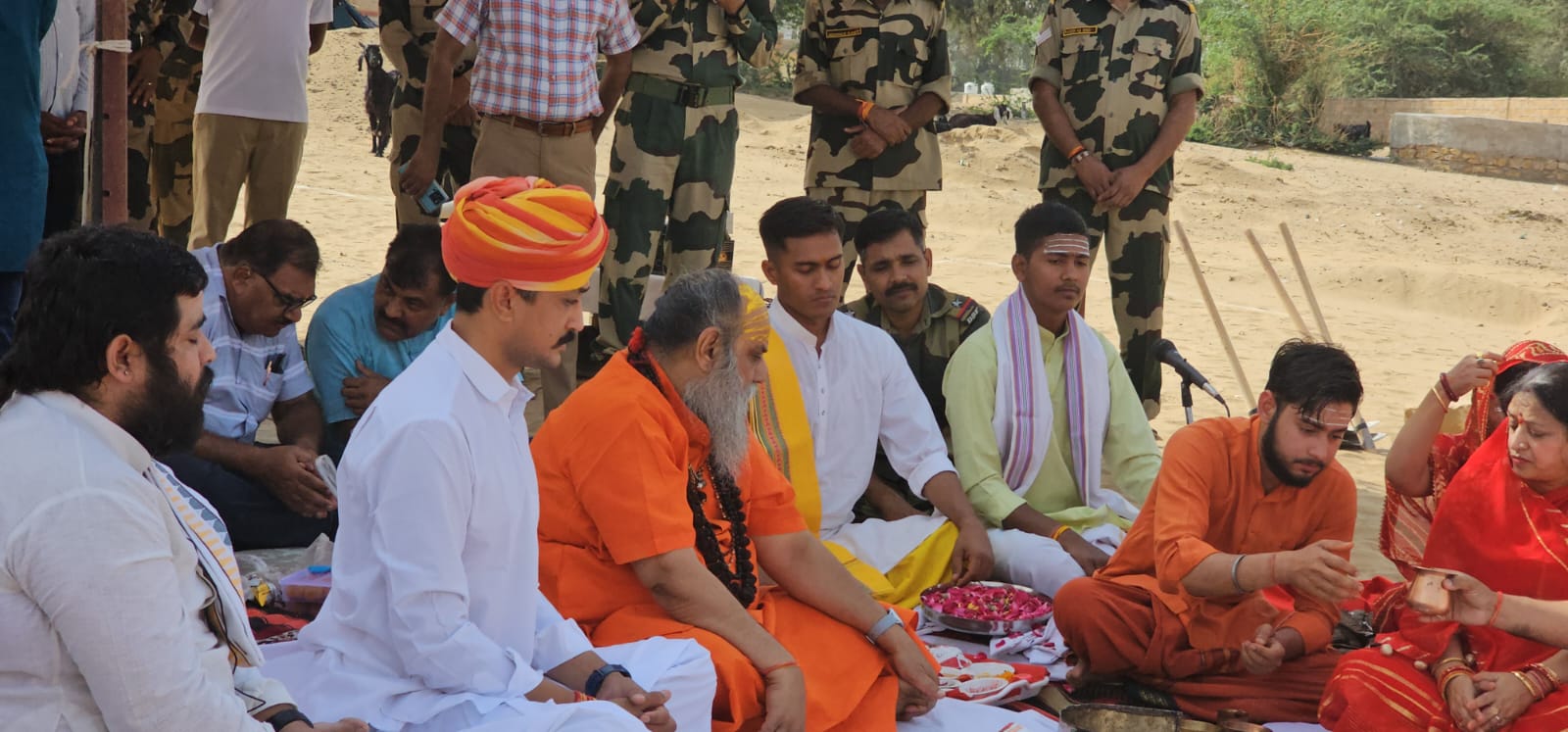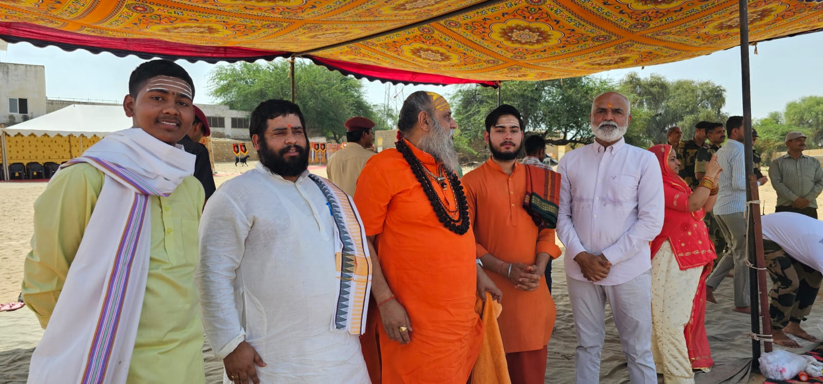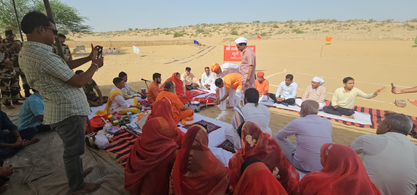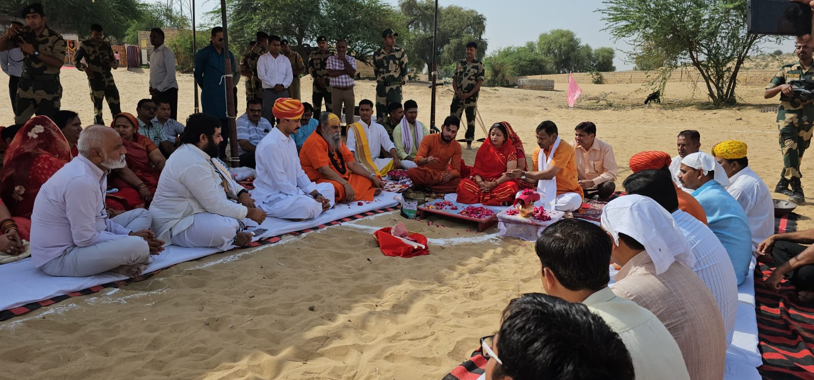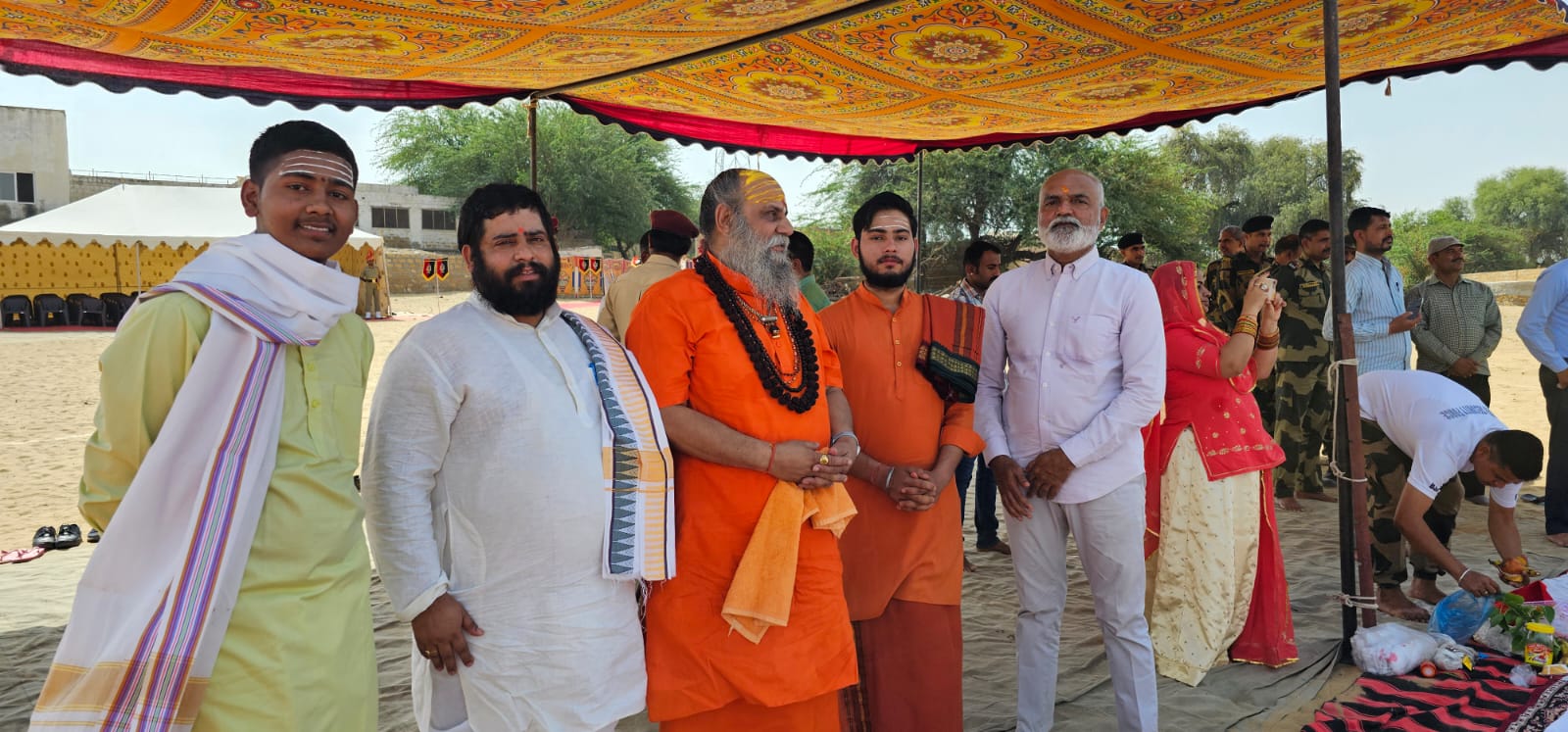 ख्याला मठ के सिद्ध सन्त गोरखनाथ अघोरी जी से दर्शन भेंट किया ,साथ ही कुंवर हरिश्चन्द्र सिंह जी मां राणी भटियाणी मंदिर संस्थान जसोल के संयोजक, तनोट राय मन्दिर के अध्यक्ष सीमा सुरक्षा बल के डी आई जी आसीम उपाध्याय जी ,कैप्टन वीरेन्द्र सिंह जी ,कर्नल संजय उपाध्याय जी ,एवं. सीमा सुरक्षा बल के अधिकारी एवं.सैनिकों ने पूज्य गुरुदेव श्रीमहन्त नारायण गिरि जी महाराज के सान्निध्य एवं अध्यक्षता मे आचार्य तोयराज उपाध्याय जी ,दीपक भट्ट जी ने तनोट माता मन्दिर का भूमि पूजन सम्पन्न करवाया पूज्य गुरुदेव का मन्दिर में स्वागत किया गया , सायंकाल तनोट माता मन्दिर में संकीर्तन हवन पूजन हुआ साथ ही तनोट माता मन्दिर का निर्माण सीमा सुरक्षा बल करेगा ,