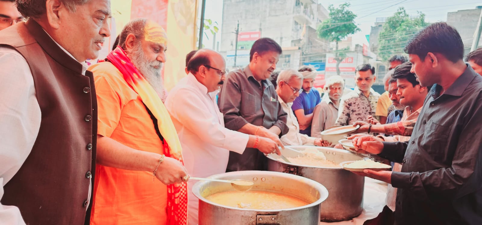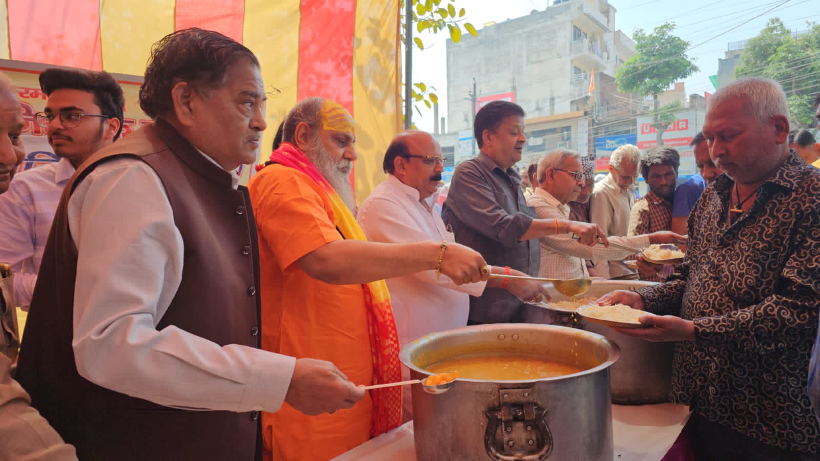 ,अशोक गोयल राज्य मंत्री उत्तर प्रदेश सरकार, नवरात्रि सप्तमी के दिन अन्नक्षेत्र भण्डारा प्रसाद का कार्यक्रम रहता है , ब्रह्मलीन डोंगरे जी महाराज ने जबसे रामलीला मैदान में कथा किया था तबसे ही सप्तमी के दिन भण्डारे का आयोजन होता है ,श्रीराम चरित मानस का पाठ हनुमान चालीसा का पाठ चल रहा है उसमें पूज्य गुरुदेव ने जाकर आज भण्डारे का प्रसाद वितरित करके शुभारम्भ किया ।