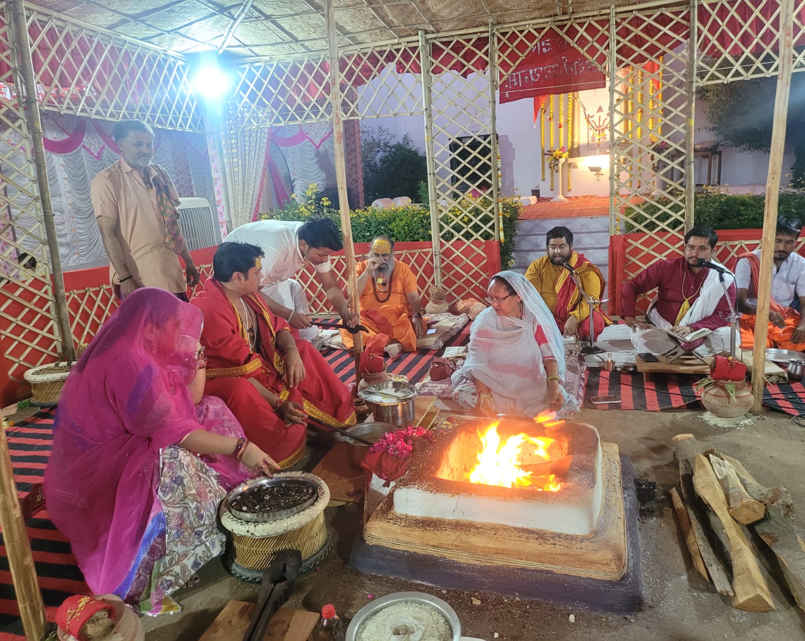 चैत्र नवरात्रि शुक्ल पक्ष अष्टमी शतचंडी यज्ञ ठिकाना आहोर रावला जिला जालोर राजस्थान में पूज्य गुरुदेव श्रीमहन्त नारायण गिरि जी महाराज दूधेश्वर पीठाधीश्वर गाजियाबाद अंतरराष्ट्रीय प्रवक्ता श्रीपंचदशनाम जूना अखाड़ा के अध्यक्षता एवं सानिध्य में राजमाता जी , ठाकुर साहब महिपाल सिंह जी,उनकी श्रीमती जी एवं कुंवर विरम देव सिंह जी द्वारा हवन सम्पन्न हुआ..एवं पूर्ण आहूति के साथ हवन विश्राम हुआ..