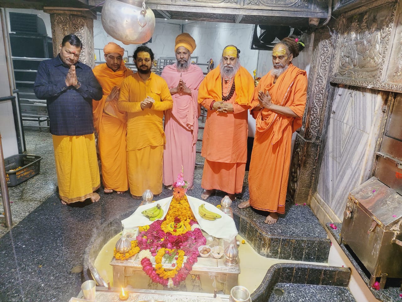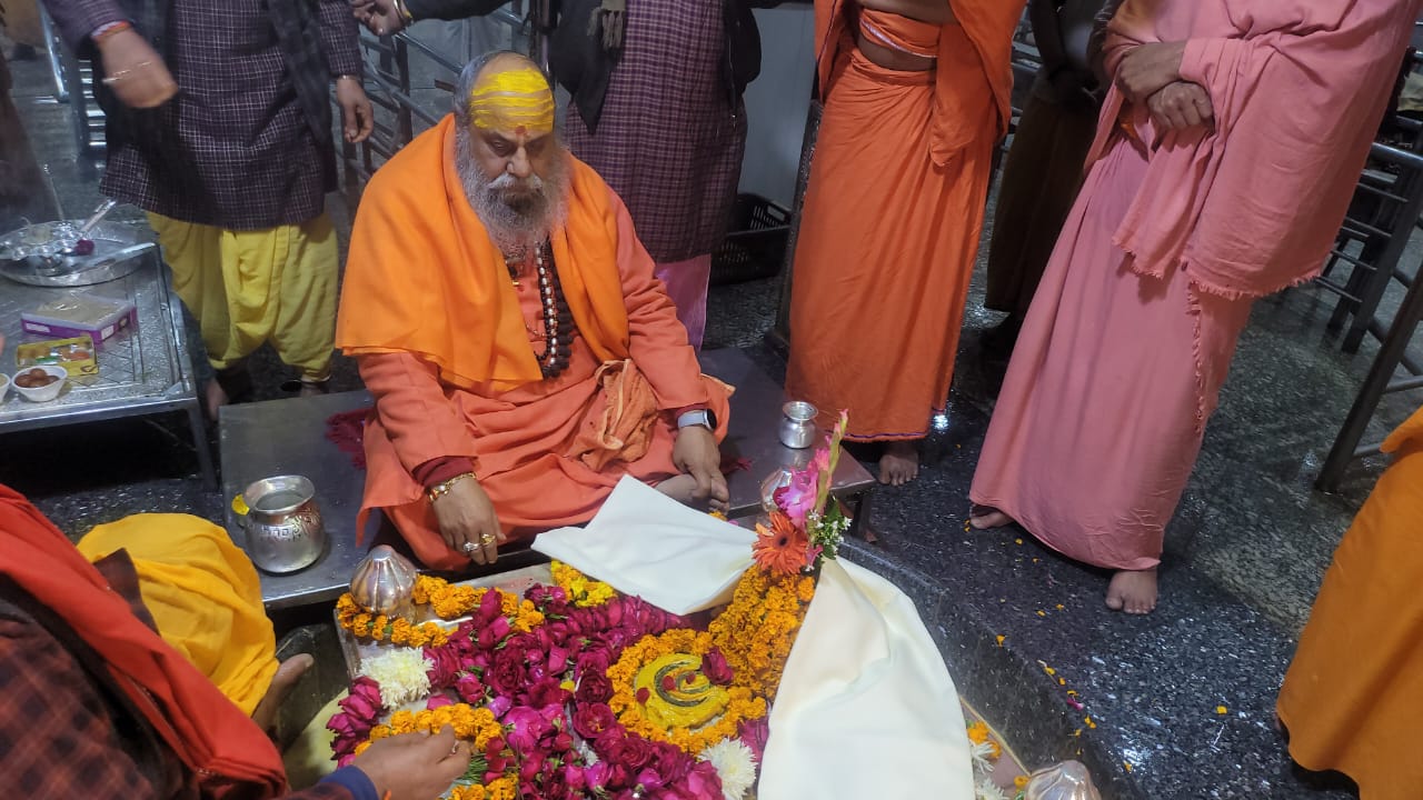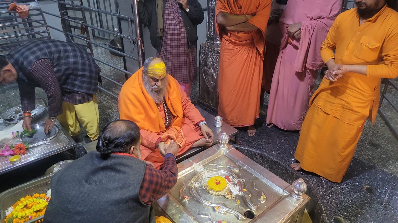 वर्तमान कोठारी थानापति महन्त इच्छा गिरि जी ने महाराज श्री का पूजन अभिषेक का बहुत सुन्दर व्यवस्था किया 12:30 से 1:30 बजे तक बाबा आनन्देश्वर महादेव का अभिषेक भोग प्रसाद पूजन किया , कोठारी जी के साथ थानापति विवेक पुरी जी , वासुदेव यती जी ,पुजारी संजय मिश्रा जी के साथ पूज्य गुरुदेव ने अभिषेक पूजन किया , पूज्य गुरुदेव ने कहा कि हम गत 40 वर्षो से आनन्देश्वर महादेव मठ में आते हैं जब ब्रह्मलीन श्रीमहन्त महामंडलेश्वर श्याम गिरि जी महाराज के महन्त थे , श्याम गिरि जी महाराज के ब्रह्मलीन होने के उपरान्त अखिल भारतीय अखाड़ा परिषद के महामंत्री श्रीमहन्त हरि गिरि जी महाराज जबसे मठ के महन्त के रूप में सेवा में लगे हैं