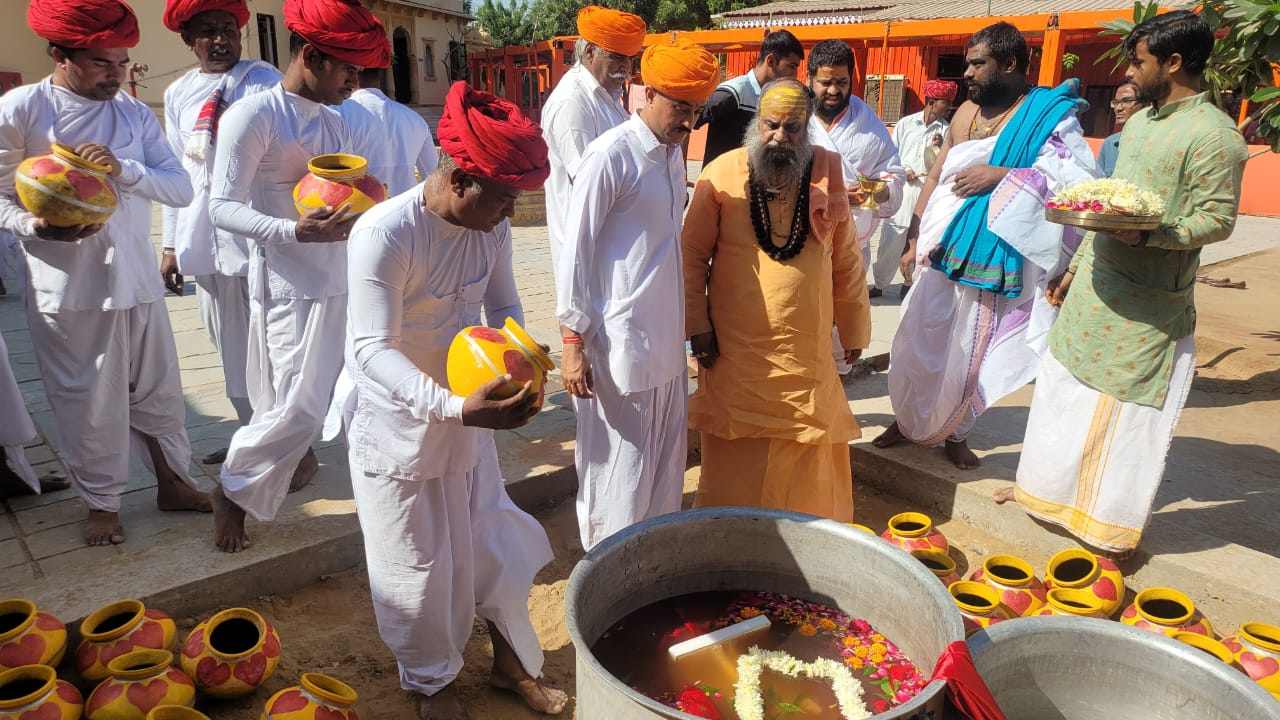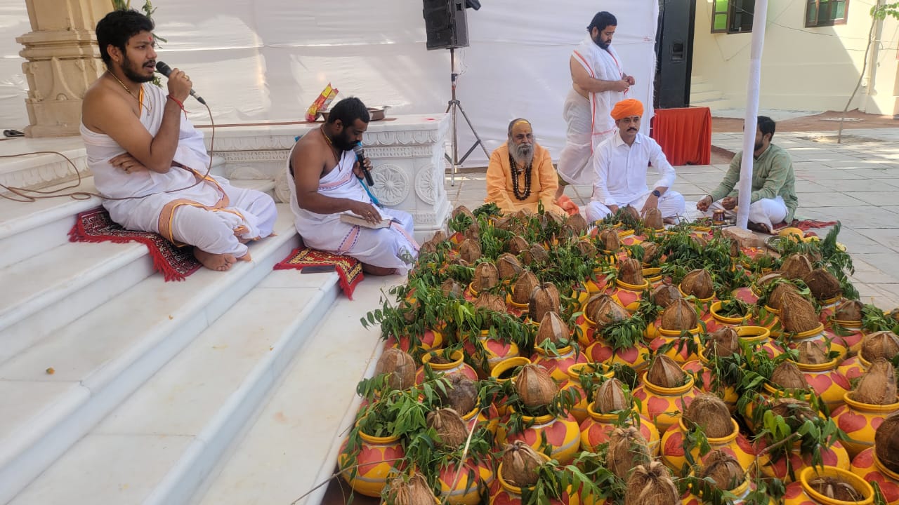 जल यात्रा से पूर्व पूज्य गुरुदेव श्रीमहन्त नारायण गिरि जी महाराज के साथ कुंवर हरिश्चन्द्र सिंह जी एवं अन्य सभी गणमान्य नागरिकों ने वैदिक मंत्रों से नर्मदेश्वर महादेव का अभिषेक किया , कन्याओं के द्वारा लाये गये जल से भैरव बाबा को प्रथम दिवस जलादिवास कराया, तदोपरान्त अन्नादिवास पुष्पादि वास  फलादिवास कराया जायेगा 22 नवंबर को प्राणप्रतिष्ठा होगी , प्राणप्रतिष्ठा पूजन प्रतिष्ठा आचार्य रामकोटेश्वर शर्मा विजयवाड़ा, आचार्य वेंकट कृष्ण शर्मा हैदराबाद , दूधेश्वर वेद विद्यालय के प्राचार्य तोयराज उपाध्याय जी, नितेश त्रिपाठी जी ,पंडित मनोहर अवस्थी जी , नितेश त्रिपाठी,दीपक भट्ट, दीपांकर पाण्डेय ,जी द्वारा प्रतिष्ठा चल रही है.