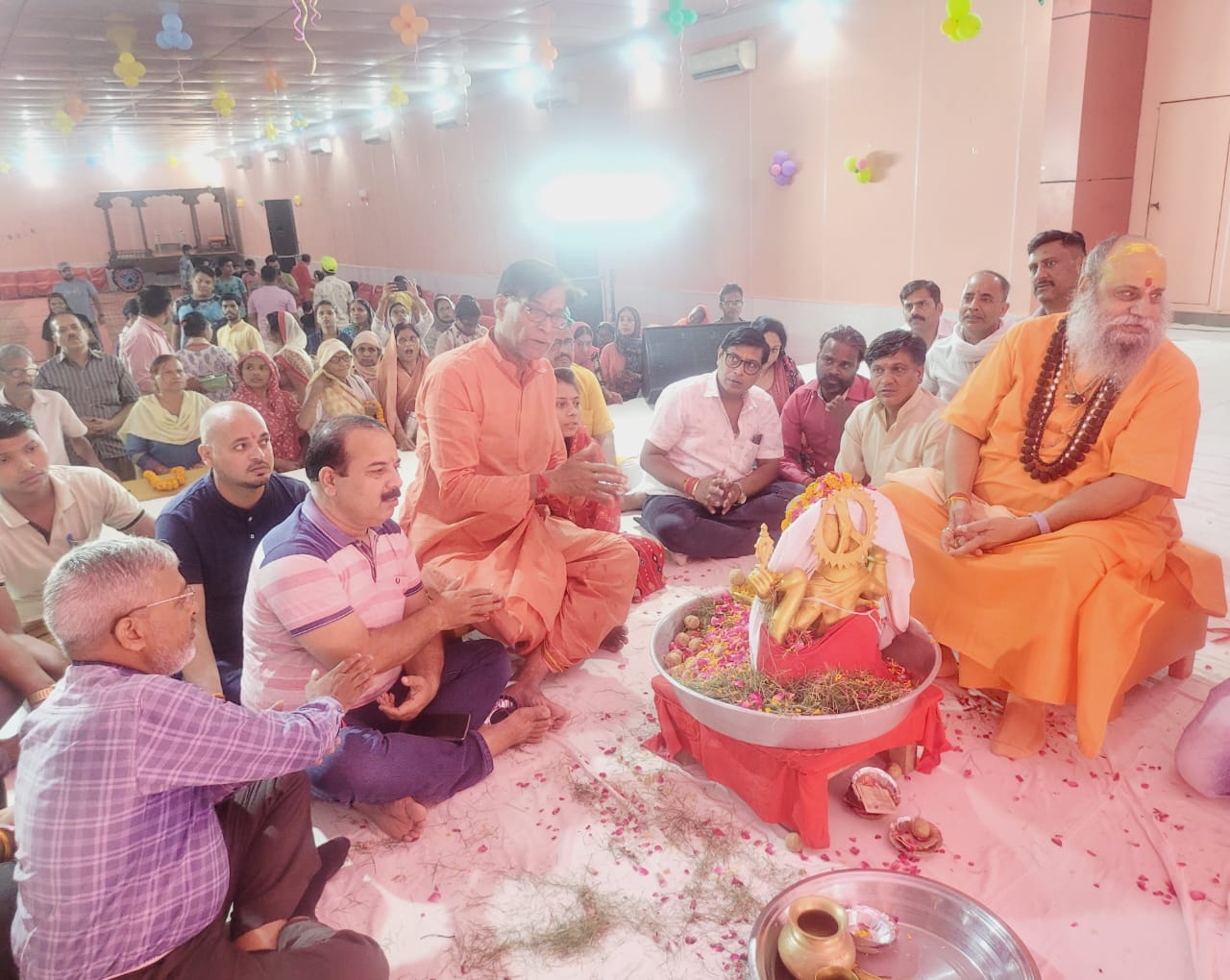 तो स्वयं शिव जी उनके रूप पर मोहित हो गए थे। इसके बाद मोहिनी रूप को त्याग अपने असली रूप में आये श्री हरि को देख कर उनका मोह क्रोध औदर क्षोभ में बदल गया और उनके कामुकता से क्रोधासुर नाम का राक्षस उत्पन्न हुआ जिसने सूर्य देव से ब्रह्मांड विजय का वरदान प्राप्त कर तीनो लोक कैलाश और बैकुंठ पर कब्जा जमा लिया स्वयं सूर्यदेव को भी सूर्यलोक छोड़कर जाना पड़ा तब सब देवताओं की उपासना से प्रसन्न होकर भगवान गणेश ने लंबोदर अवतार लेकर क्रोधासुर से युद्ध कर उसे अपनी शरण में आने पर विवश कर दिया”आज पूज्य गुरुदेव श्रीमहन्त नारायण गिरि जी महाराज श्री दूधेश्वर पीठाधीश्वर गाजियाबाद अन्तर्राष्ट्रीय प्रवक्ता श्रीपंचदशनाम जूना अखाड़ा के अध्यक्षता में भगवान लम्बोदर का महाराज श्री ने षोडशोपचार पूजन अभिषेक किया.