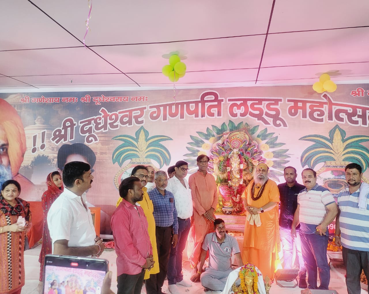 1100 लड्डू से भगवान श्री गणेश जा सहस्त्रनाम से अर्चना किया गया , गणपति लड्डू महोत्सव 9 सितम्बर अनन्त चतुर्दशी तक चलने वाला है प्रत्येक दिवस भगवान श्री गणेश का पूजन अभिषेक सहस्रनाम अर्चना चल रहा है रात्री काल आरती के पश्चात लड्डू का प्रसाद वितरण किया जाता है  साथ ही प्रख्यात कलाकारों द्वारा सांस्कृतिक कार्यक्रम रात्री 8 से 10 बजे तक नित्य दिवस चल रहा है  दूधेश्वर गणपति लड्डू महोत्सव 10दिन तक बहुत भव्य रूप से धूम धाम से मानाया जा रहा है  लड्डू महोत्सव में विशेष सहयोग मन्दिर विकास समिति के अध्यक्ष धर्मपाल गर्ग जी , उपाध्यक्ष अनुज गर्ग जी के पूरृण सहयोग से कार्यक्रम बहुत दिव्य एवं भव्य मन्दिर परिसर में स्थित दूधेश्वर सत्संग भवन में चल रहा है ,आज भगवान गणेश जी के पंचम स्वारूप भगवान का पंचामृत से अभिषेक एवं सहस्रनाम से भगवान गणपति को अतिप्रिय दुर्वा एवं लड्डू से अर्चना करके पूज्य गुरुदेव ने भगवान श्री गणेश की आरती करके  भक्तों को प्रसाद वितरित किया ,आज पूजन में महाराज श्री के साथ दूधेश्वर श्रृंगार सेवा समिति के अध्यक्ष विजय मित्तल जी,एवं समस्त समिति के सदस्यों ने पूजन करके भक्तों धर्मलाभ प्राप्त किया,पूजन पूर्ण वैदिक विधि विधान से दूधेश्वर वेद विद्यालय के वरिष्ठ प्राचार्य लक्ष्मीकान्त पाणी जी , आचार्य डा कैलाश नाथ तिवारी जी इटावा, दूधेश्वर वेद विद्यालय के प्राचार्य तोयराज उपाध्याय जी ,आचार्य विकास पाण्डेय जी , आचार्य नित्यानंद जी ,एवं दूधेश्वर वेद विद्यालय के छात्रों द्वारा प्रथम दिवस पूजन सम्पन्न हुआ , कार्यक्रम की व्यवस्था श्री दूधेश्वर श्रृंगार सेवा समिति के अध्यक्ष विजय मित्तल जी एवं समस्त समिति के सदस्यों द्वारा की जा रही है साथ ही श्रीमहन्त गौरी गिरि दूधेश्वर नाथ महादेव मठ मन्दिर समिति के सदस्यों एवं श्री दूधेश्वर के भक्तों की उपस्थिति में पंचम दिवस पूजन सम्पन्न हुआ।