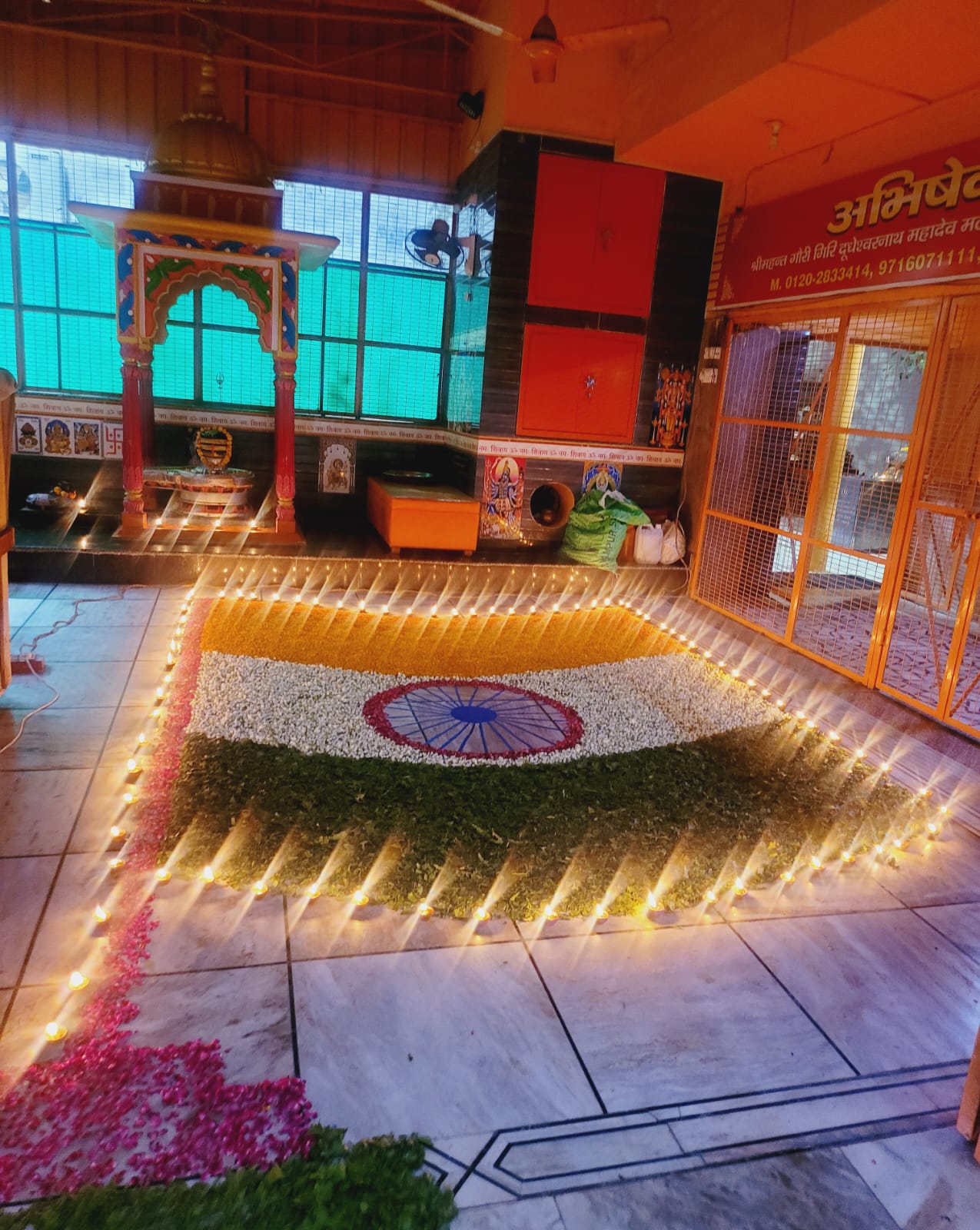 आज गाजियाबाद स्थित सिद्धपीठ दूधेश्वर नाथ मंदिर में श्रीपंच दशनाम जूना अखाड़ा के अन्तर्राष्ट्रीय संरक्षक श्रीमहंत हरि गिरि जी महाराज का आदेश अनुसार आजादी के 75 वर्षगांठ के अवसर पर पुरे देश में स्वतंत्र दिवस की 75 वीं वर्षगांठ अमृत महोत्सव कि पूरा देश में मनाया जाने वाला आज दिनांक 13 अगस्त से 15 अगस्त तक तीन दिवसीय कार्यक्रम भारत का अमृत महोत्सव के अवसर पर प्रारंभ हुआ जिसमें गाजियाबाद सिद्ध पीठ श्री दूधेश्वर नाथ मंदिर के पीठाधीश्वर श्रीमहंत नारायण गिरी जी महाराज ने शहीदों को 75 दीपक जलाकर श्रद्धांजलि दी गई एवं उसके उपरांत मंदिर परिसर में रंग बिरंगी लाईटों एवं फुलों द्वारा तिरंगा झंडा बनाया गया एवं मंदिर में राष्ट्रीय ध्वज झंडा लगाये गये जिसमें के श्रीमहंत जी और विद्यार्थियों ने 1 दिन के लिए कार्यक्रम रखा गया धूमधाम से मनाया गया