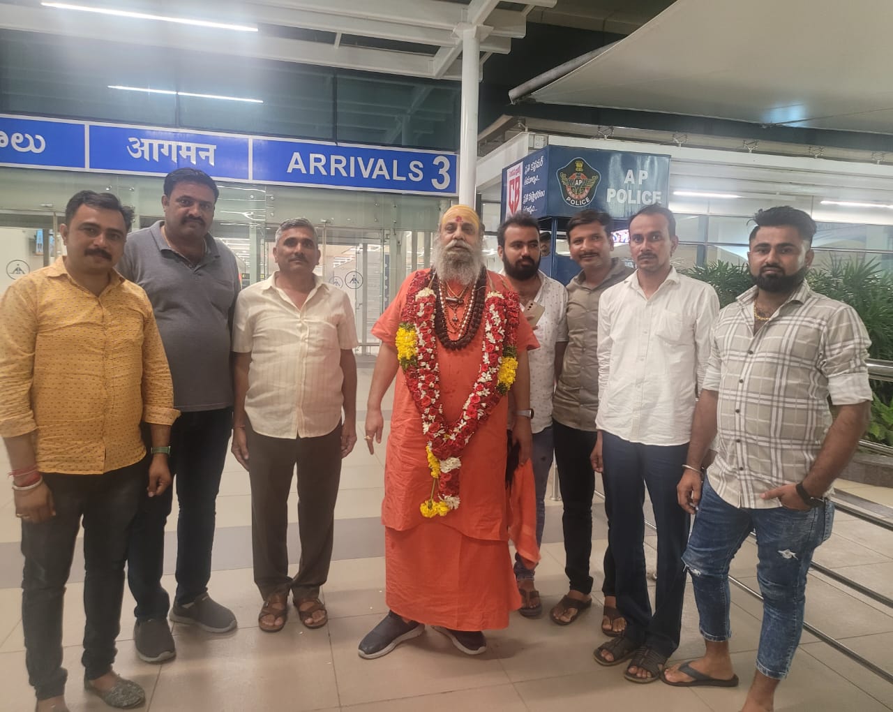 आज कडपा आन्ध्रप्रदेश में बाबा राम देव जी ,माता जी ,महादेव जी के मन्दिर प्राण प्रतिष्ठा महोत्सव में भाग लेने के पूज्यगुरुदेव श्रीमहन्त नारायण गिरि जी महाराज श्री दूधेश्वर पीठाधीश्वर गाजियाबाद अन्तर्राष्ट्रीय प्रवक्ता श्रीपंचदशनाम जूना अखाड़ा के कडपा एयरपोर्ट पर पधारने पर विश्नोई समाज के भक्तो ने भव्य स्वागत किया ,