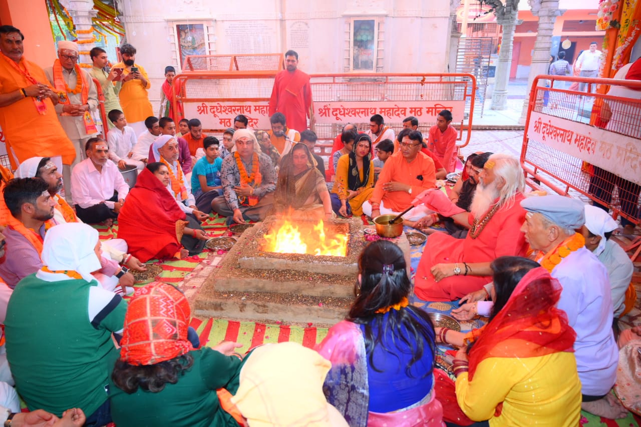 श्री दूधेश्वरनाथ पीठाधीश्वर श्री महंत नारायण गिरी जी महाराज ने आशीर्वचन में कहा कि ‘आज के युग में भी आप जैसे संस्कृति प्रेमी भक्त हैं, जो दूसरों के लिए सेवा, समर्पण की भावना के साथ इस प्रकार विधि में सम्मिलित होते हैं, श्री दूधेश्वर नाथ मंदिर जैसे पवित्र परिसर में आपके शुभ संकल्प अवश्य सिद्ध होंगे।