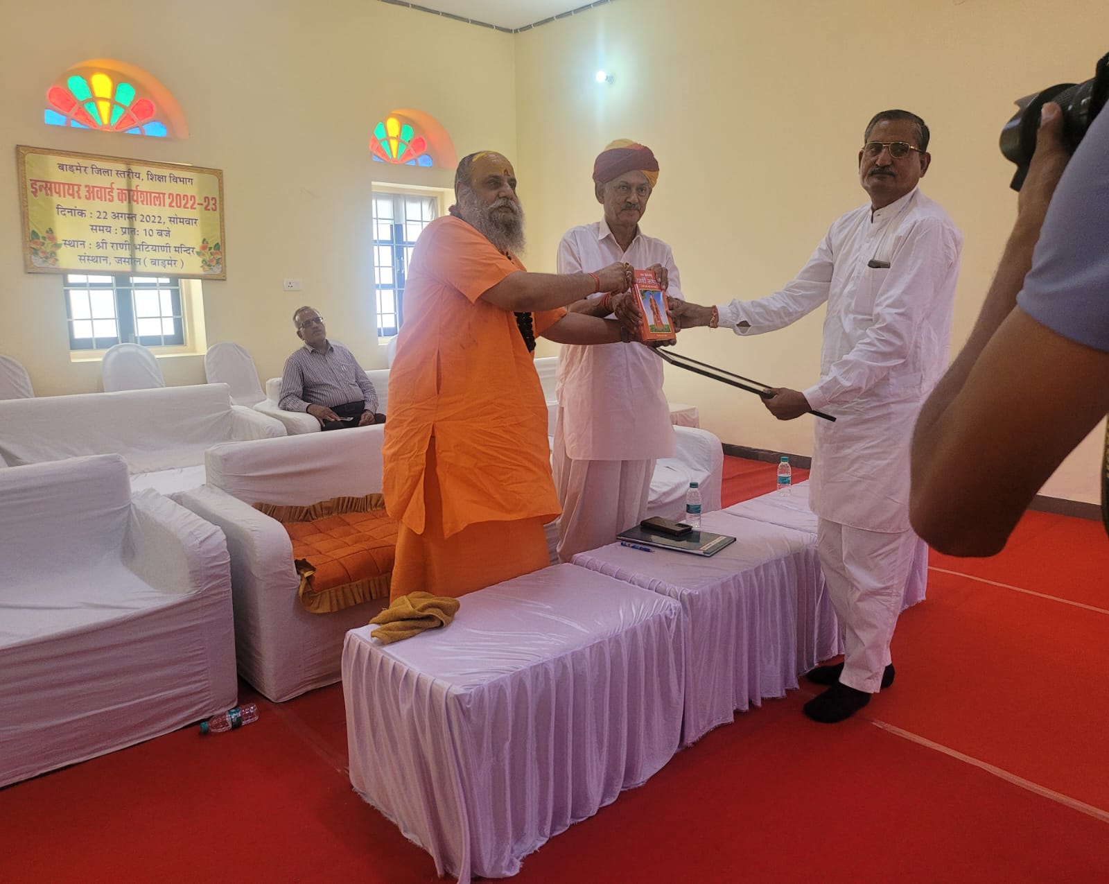 पूज्य गुरुदेव श्रीमहन्त नारायण गिरि जी महाराज श्री दूधेश्वर पीठाधीश्वर गाजियाबाद अन्तर्राष्ट्रीय प्रवक्ता श्रीपंचदशनाम जूना अखाड़ा के दिशा निर्देश में एवं उपस्थिति में एस डी एम नरेश सोनी जी , ग्राम सरपंच के साथ राम रसोड़ा बाला जी धाम असाडा बालोतरा में भक्तों को विचरण किया ,बाड़मेर जिले के 21 पंचायतों के शिक्षक समुदाय के शिक्षक एवं पंचायत शिक्षा अधिकारियों एवं सरकारी स्कूलों के अध्यपको को इंस्पायर्ड अवार्ड शिक्षा सम्मेलन हुआ