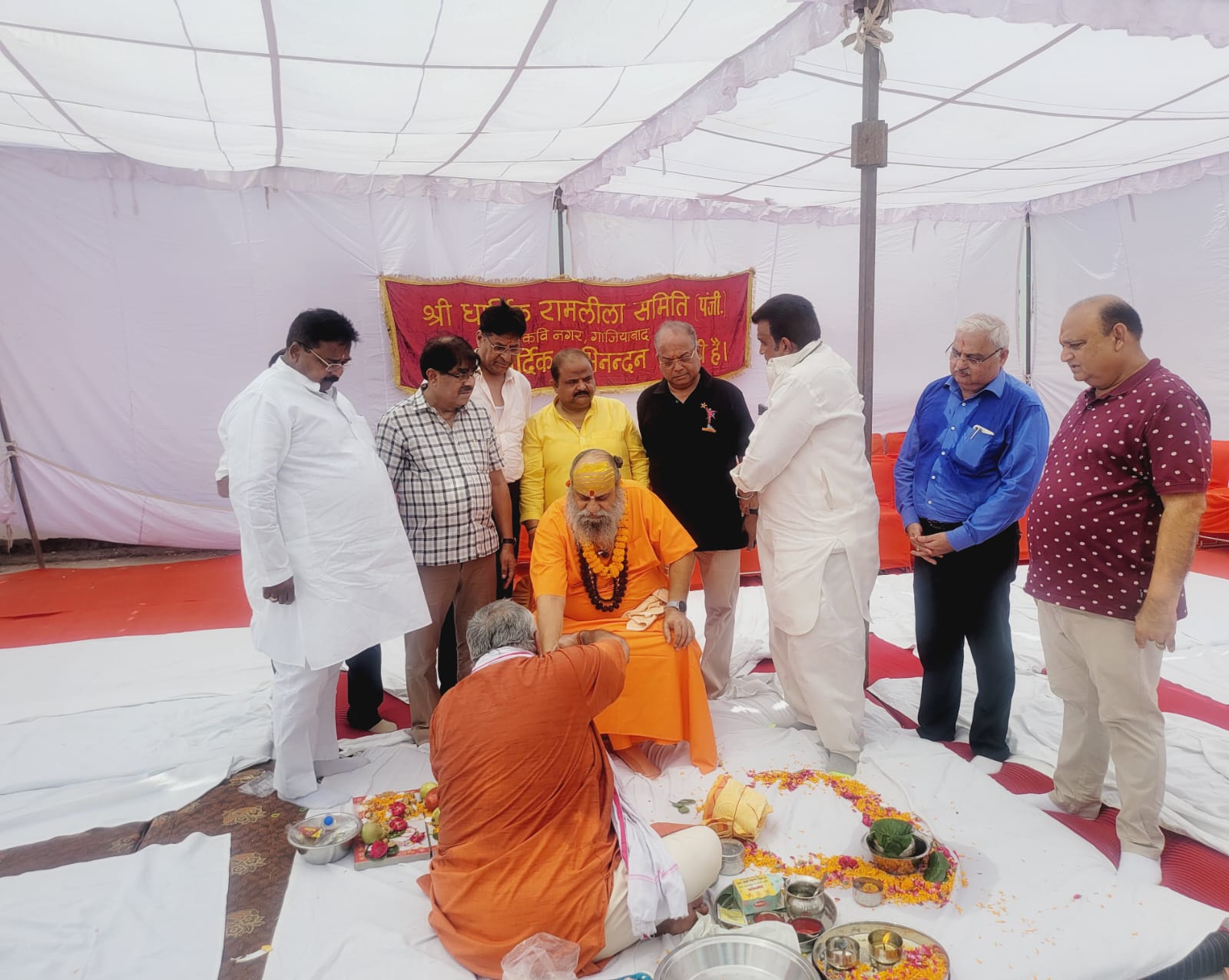 एवं‌ रामलीला समिति के सदस्यों को आशीर्वाद दिया एवं‌ धार्मिक कार्य करने के लिये साधुवाद दिया , रामलीला समिति के अध्यक्ष ललित जायसवाल जी,महामंत्री भूपेंद्र चोपड़ा जी,ने उपस्थित अतिथियों का स्वागत सम्मान किया ,इस अवसर पर विधायक एम एल‌ सी दिनेश गोयल जी ,भाजपा के वरिष्ठ नेता वल्देवराज शर्मा जी ,राज्यमंत्री नरेन्द्र कश्यप जी ,सहित गाजियाबाद के गणमान्य नागरिकों की उपस्थिति रही आज भूमि पूजन एवं भोजन प्रसाद‌का कार्यक्रम सम्पन्न हुआ ,।