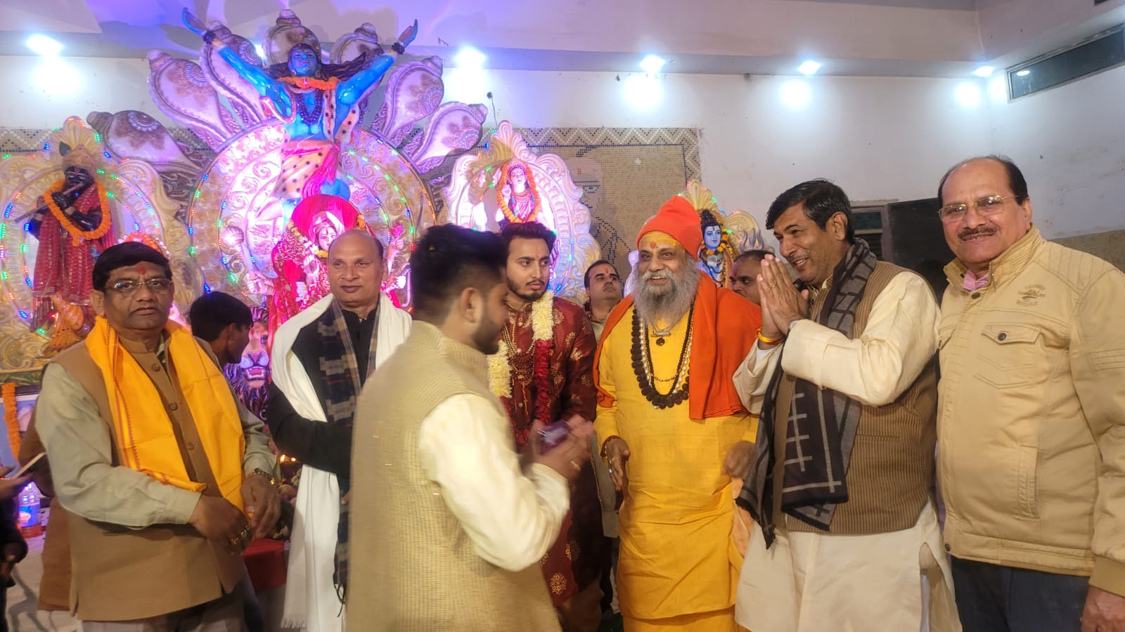 आज ब्रह्मानन्द गौड़ जी के पुत्र के सगाई से पूर्व माता की चौकी आयोजन किया जिसमें पूज्य गुरुदेव श्रीमहन्त नारायण गिरि जी महाराज श्री दूधेश्वर पीठाधीश्वर गाजियाबाद अन्तर्राष्ट्रीय प्रवक्ता श्रीपंचदशनाम जूना अखाड़ा की पावन उपस्थिति में गुरू चरण शर्मा केदार घी वाले , लोकप्रिय एम एल सी विधायक श्रीचंद शर्मा जी एवं अन्य गणमान्य व्यक्तियों की उपस्थिति में जाकर पूज्य गुरुदेव ने दाम्पत्य जीवन में प्रवेश से पूर्व आशीर्वाद दिया कि आपका वैवाहिक जीवन सुख शान्ति समृद्धि पुत्र पौत्रादि धन धान्य से परिपूर्ण रहे ।