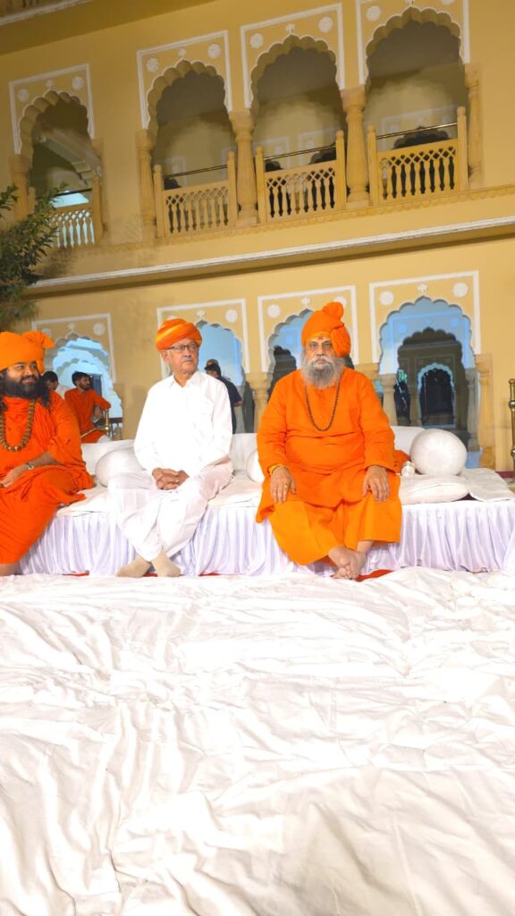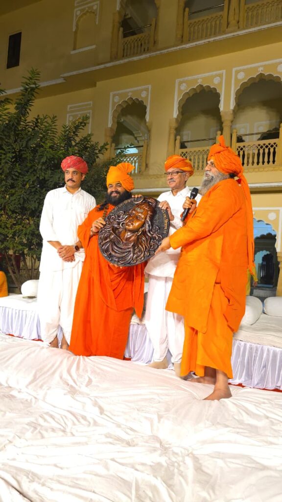 जगदगुरू स्वामी महेंद्रानंद गिरि महाराज व श्रीमहंत नारायण गिरि महाराज ने रावल किशन सिंह को सम्मानित किया:-