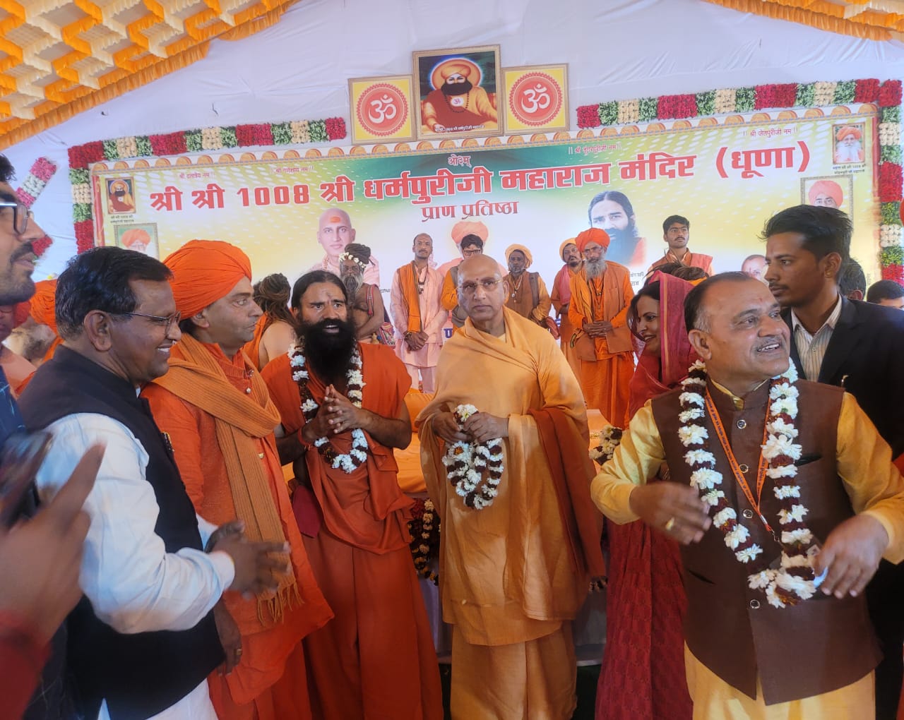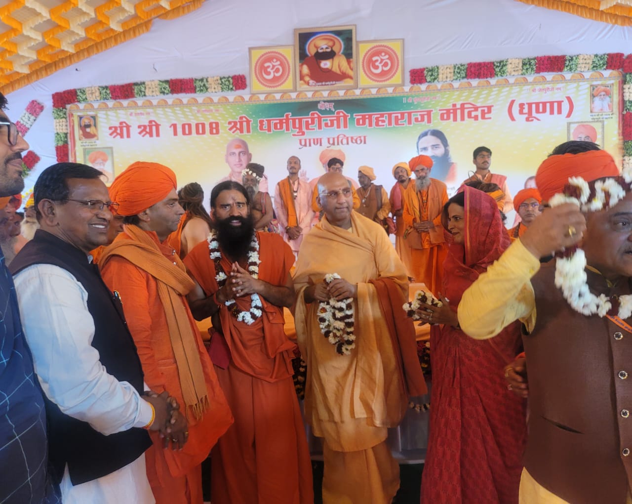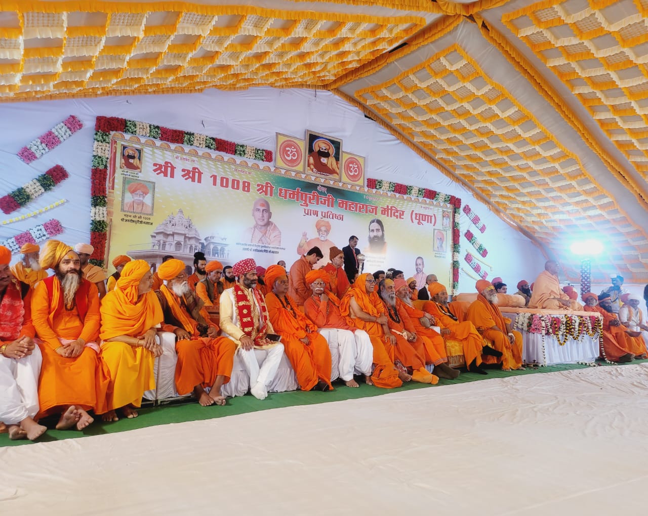 आज बाड़मेर की दिव्य धरा पर स्थित धर्म धूणा पन्नाणीयो का तला तारातरा में आयोजित श्री श्री 1008 श्री धर्मपुरी जी महाराज मंदिर (धूणा) प्राण प्रतिष्ठा, स्वामी श्री जगरामपुरी जी महाराज का जीवित भंडारा एवं विराट संत समागम महोत्सव में जूना अखाड़ा के आचार्य महामंडलेश्वर पूज्य स्वामी श्री अवधेशानंद गिरी जी महाराज, योग ऋषि श्री बाबा रामदेव जी का आगमन हुआ।