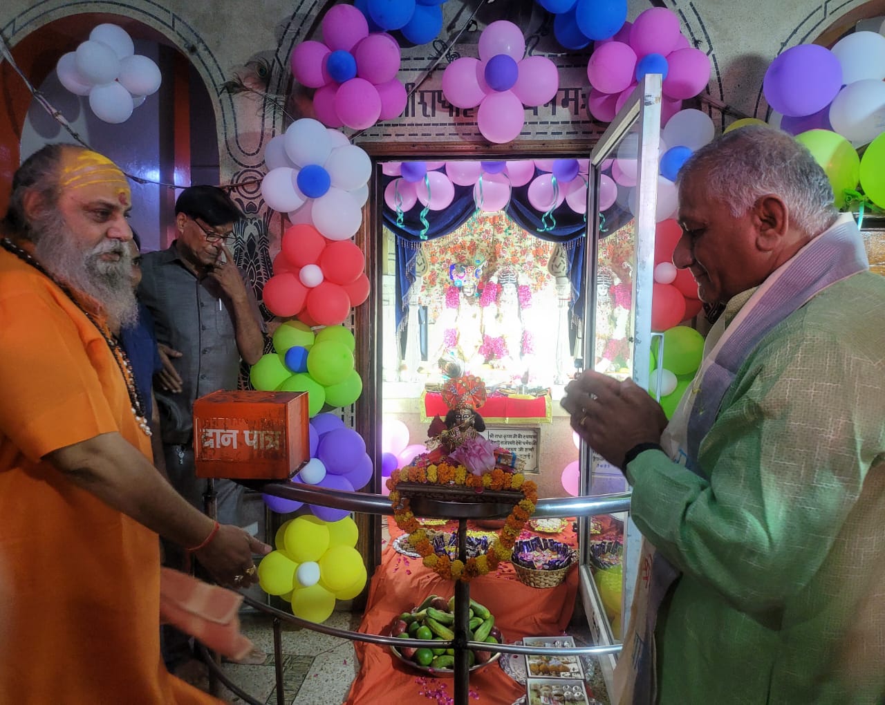 सिद्धपीठ श्री दूधेश्वर नाथ महादेव मठ मन्दिर गाजियाबाद उत्तर प्रदेश में भगवान श्रीकृष्ण के जन्मोत्सव के अवसर पर लड्डू गोपाल जी का पूज्य गुरुदेव श्रीमहन्त नारायण गिरि जी महाराज श्री दूधेश्वर पीठाधीश्वर गाजियाबाद अन्तर्राष्ट्रीय प्रवक्ता श्रीपंचदशनाम जूना अखाड़ा के कर कमलों से पंचामृत दुध दही घी शहद विभिन्न प्रकार के फलों का रस से अभिषेक हुआ ,