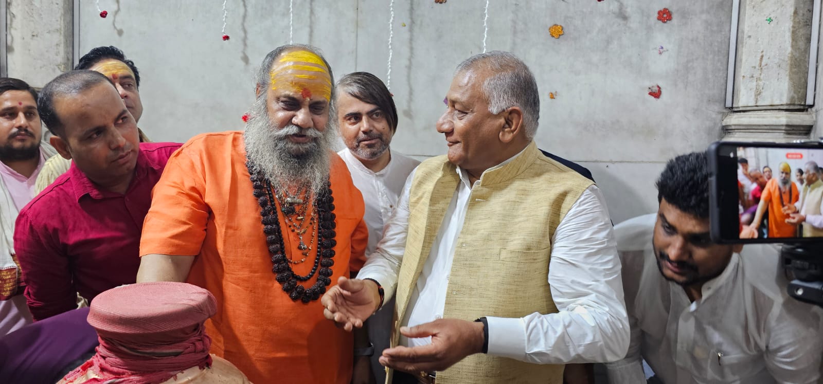 विशेष रूप से आज सायंकाल 5 बजे गाजियाबाद के लोकप्रिय सांसद सांसद एवं केन्द्रीय मंत्री जनरल वीके सिंह जी ने दूधेश्वर नाथ महादेव.मठ मन्दिर आके भगवान दूधेश्वर का पूजन अभिषेक किया तदोपरान्त पूज्य गुरुदेव से आशीर्वाद प्रात किया एवं महाराज श्री ने भगवान दूधेश्वर का आशीर्वाद स्वारूप पटका माला दूधेश्वर भगवान का प्रतीक चिन्ह भेट किया एवं आज वी के सिंह जी ने.कहा कि राज्य सरकार,केन्द्र सरकार के सहयोग से जिला प्रसासन एवं.पुलिस प्रसासन.नगर निगर सभी के सहयोग से जैसे काशी विश्वनाथ का कोरिडोर बानया गया है वैसे दूधेश्वर मन्दिर का कोरिडोर बानाया जायेगा जिसका कार्य शीघ्र ही प्रारम्भ होगा ,