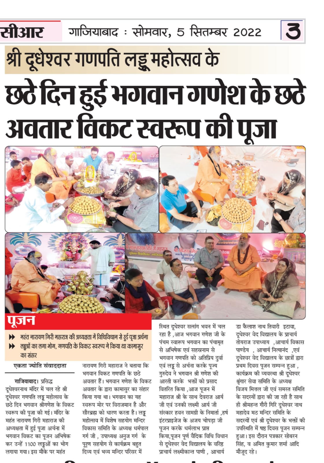 आज सिद्धपीठ श्री दूधेश्वर नाथ महादेव मठ मन्दिर गाजियाबाद उत्तर प्रदेश में श्री दूधेश्वर गणपति लड्डू महोत्सव का भव्य उत्सव चल रहा है जिसमें आज षष्ठ स्वरूप भगवान विकट स्वारूप का अभिषेक पूजन किया गया ,