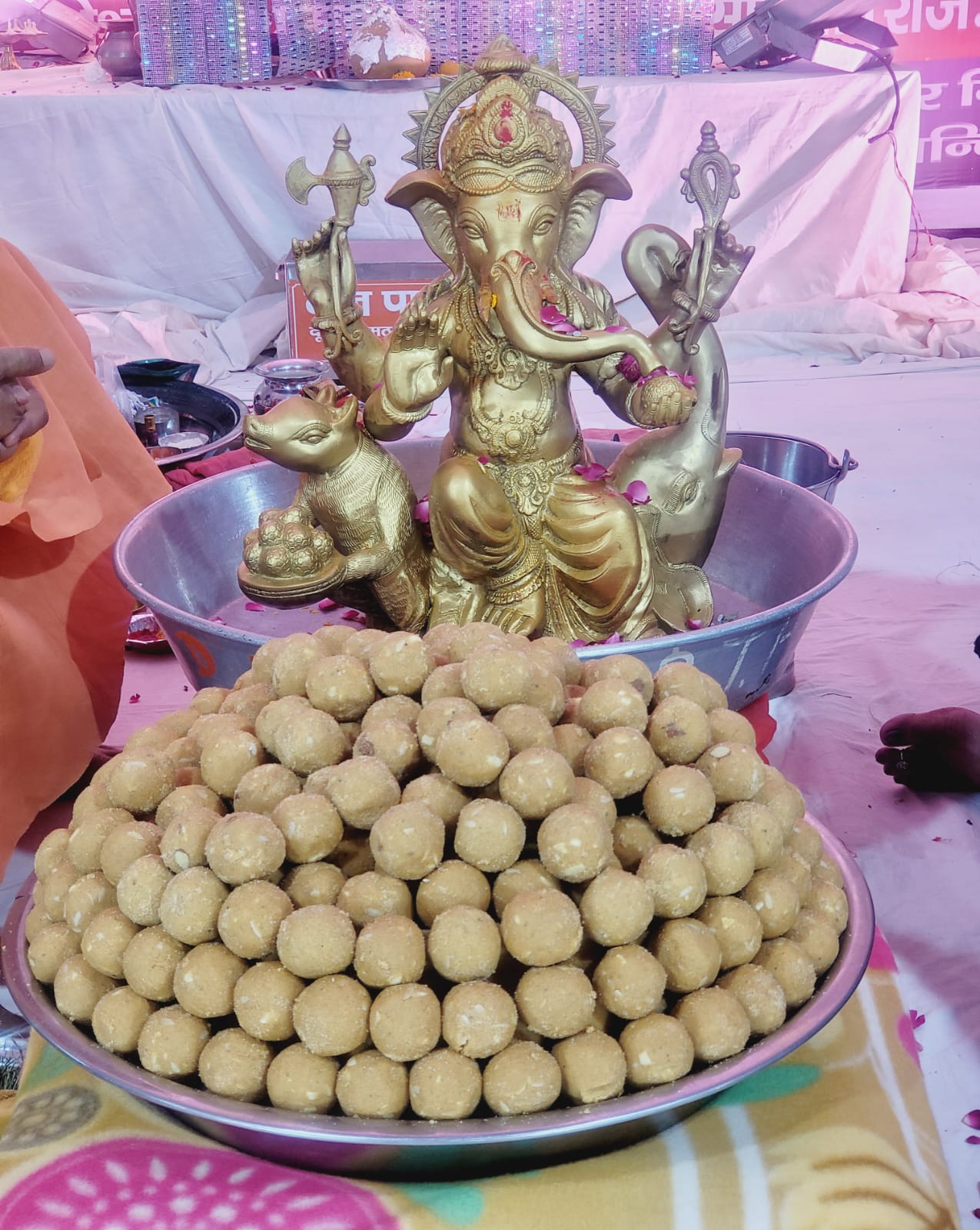 लड्डू महोत्सव में विशेष सहयोग मन्दिर विकास समिति के अध्यक्ष धर्मपाल गर्ग जी , उपाध्यक्ष अनुज गर्ग जी के पूरृण सहयोग से कार्यक्रम बहुत दिव्य एवं भव्य मन्दिर परिसर में स्थित दूधेश्वर सत्संग भवन में चल रहा है ,आज भगवान गणेश जी के “षष्ठ विकट” स्वारूप भगवान का पंचामृत से अभिषेक एवं सहस्रनाम से भगवान गणपति को अतिप्रिय दुर्वा एवं लड्डू से अर्चना करके पूज्य गुरुदेव ने भगवान श्री गणेश की आरती करके भक्तों को प्रसाद वितरित किया ,आज पूजन में महाराज श्री के साथ देवराज आर्य जी एवं उनकी श्रीमति लक्ष्मी आर्य जी संस्कार हवन सामग्री के निर्माता ,हर्ष इंटरप्राइजेज के अजय चोपड़ा जी , सुभाषचंद्र शर्मा सीतापुर वाले, पूजन करके धर्मलाभ प्राप्त किया,पूजन पूर्ण वैदिक विधि विधान से दूधेश्वर वेद विद्यालय के वरिष्ठ प्राचार्य लक्ष्मीकान्त पाणी जी , आचार्य डा कैलाश नाथ तिवारी जी इटावा, दूधेश्वर वेद विद्यालय के प्राचार्य तोयराज उपाध्याय जी ,आचार्य विकास पाण्डेय जी , आचार्य नित्यानंद जी ,एवं दूधेश्वर वेद विद्यालय के छात्रों द्वारा प्रथम दिवस पूजन सम्पन्न हुआ , कार्यक्रम की व्यवस्था श्री दूधेश्वर श्रृंगार सेवा समिति के अध्यक्ष विजय मित्तल जी एवं समस्त समिति के सदस्यों द्वारा की जा रही है साथ ही श्रीमहन्त गौरी गिरि दूधेश्वर नाथ महादेव मठ मन्दिर समिति के सदस्यों एवं श्री दूधेश्वर के भक्तों की उपस्थिति में षष्ठ दिवस पूजन सम्पन्न हुआ।