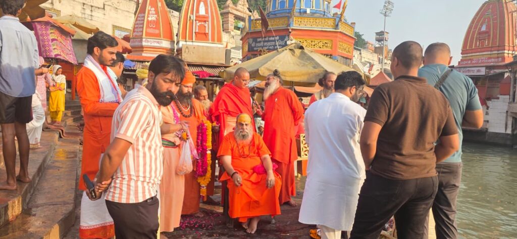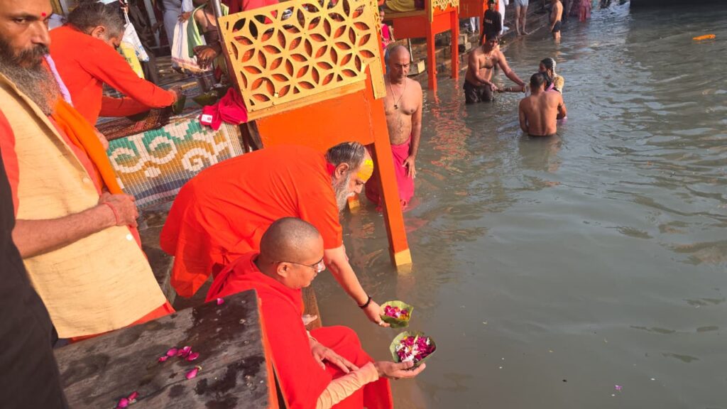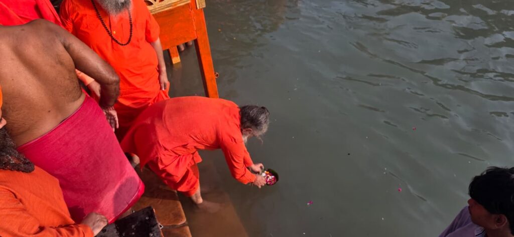 श्रीमहंत हरि गिरि महाराज के आशीर्वाद से अस्थियों का विसर्जन ब्रह्मकुंड, हर की पौड़ी पर हुआ।