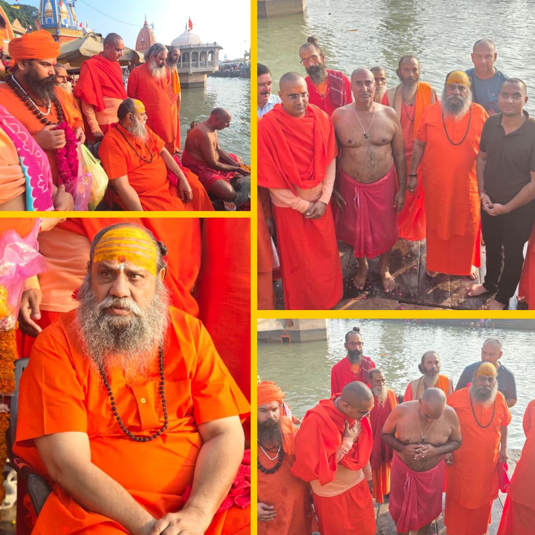 श्रीमहंत हरि गिरि महाराज के आशीर्वाद से अस्थियों का विसर्जन ब्रह्मकुंड, हर की पौड़ी पर हुआ।