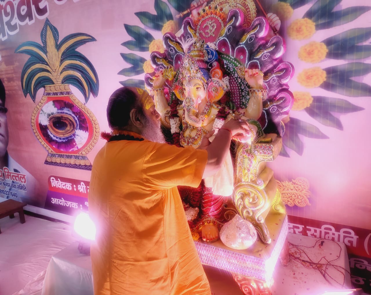 9 सितम्बर अनन्त चतुर्दशी के दिन भगवान श्रीगणेश को रथ में विराजमान करके विशाल नगर शोभा यात्रा के साथ श्री दूधेश्वर घाट छोटा हरिद्वार मुरादनगर में गणपति बप्पा की विदाई की जायेगी , तृतीय दिवस भगवान श्री गणेश  भगवान का पंचामृत से अभिषेक एवं सहस्रनाम से भगवान गणपति को अतिप्रिय दुर्वा एवं लड्डू से अर्चन करके पूज्य गुरुदेव ने भगवान श्री गणेश की आरती करके  भक्तों को प्रसाद वितरित किया ,पूजन पूर्ण वैदिक विधि विधान से दूधेश्वर वेद विद्यालय के वरिष्ठ प्राचार्य लक्ष्मीकान्त पाणी जी , आचार्य डा कैलाश नाथ तिवारी जी इटावा, दूधेश्वर वेद विद्यालय के प्राचार्य तोयराज उपाध्याय जी ,आचार्य विकास पाण्डेय जी , आचार्य नित्यानंद जी ,एवं दूधेश्वर वेद विद्यालय के छात्रों द्वारा तृतीय दिवस पूजन सम्पन्न हुआ , कार्यक्रम की व्यवस्था श्री दूधेश्वर श्रृंगार सेवा समिति के अध्यक्ष विजय मित्तल जी एवं समस्त समिति के सदस्यों द्वारा की जा रही है साथ ही श्रीमहन्त गौरी गिरि दूधेश्वर नाथ महादेव मठ मन्दिर समिति के सदस्यों एवं श्री दूधेश्वर के भक्तों की उपस्थिति में तृतीय दिवस पूजन सम्पन्न हुआ।