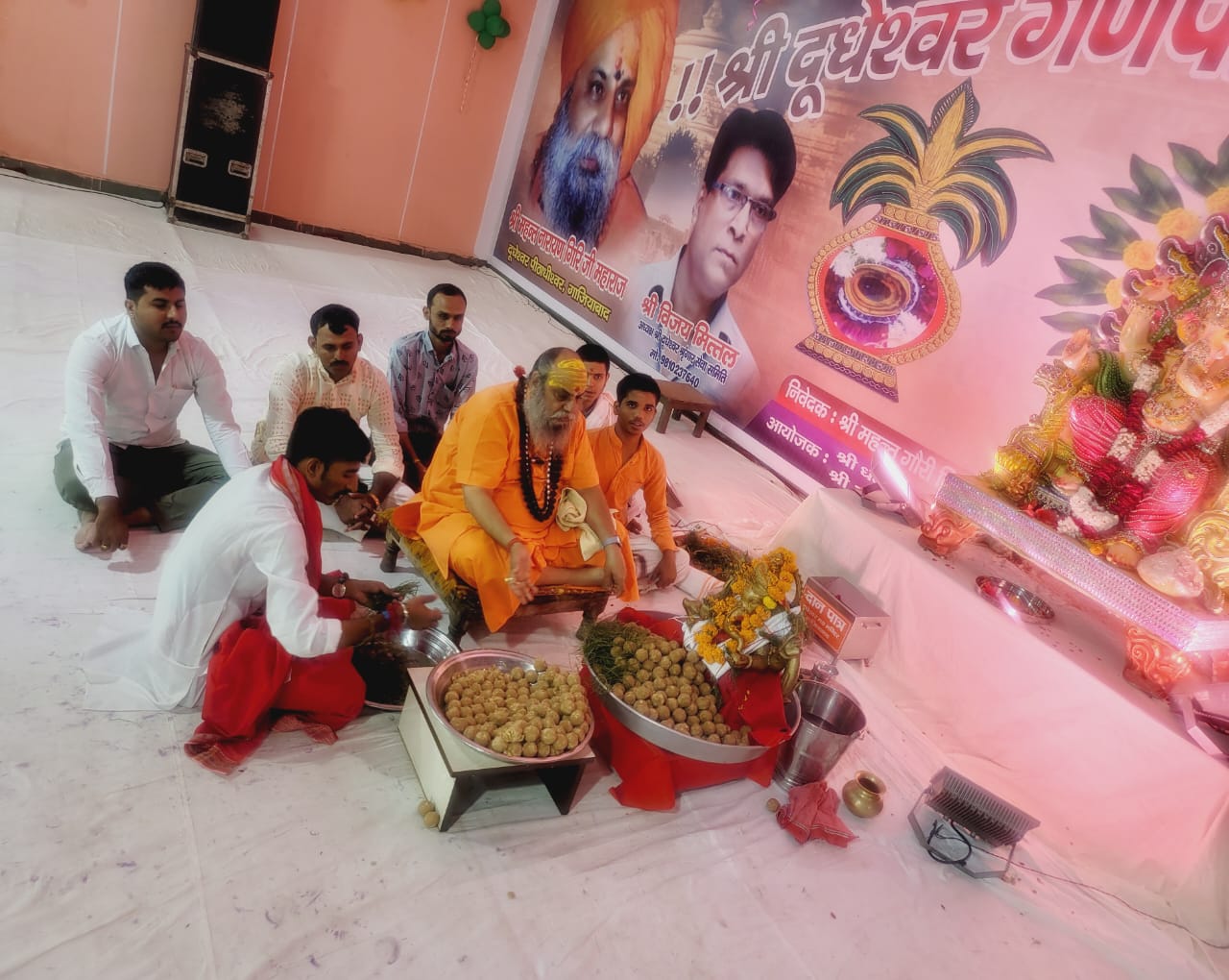 आज सिद्धपीठ श्री दूधेश्वर नाथ महादेव मठ मन्दिर गाजियाबाद उत्तर प्रदेश में श्री दूधेश्वर गणपति लड्डू महोत्सव का भव्य उत्सव चल रहा है जिसमें आज तृतीय दिवस  भगवान कपिल स्वरूप का अभिषेक पूजन किया गया ,आज पूज्य गुरुदेव श्रीमहन्त नारायण गिरि जी महाराज जी के साथसंजय गर्ग शंकर गारमेंट्स,निखिल गर्ग, सुभाष गुप्ता रोटरी क्लब वाले ने श्री दूधेश्वर पीठाधीश्वर गाजियाबाद अन्तर्राष्ट्रीय प्रवक्ता श्रीपंचदशनाम जूना अखाड़ा के अध्यक्षता में भगवान कपिल स्वरूप का महाराज श्री ने षोडशोपचार पूजन अभिषेक किया  1100 ड्डू से भगवान श्री गणेश जी सहस्त्रनाम से अर्चन किया गया ,