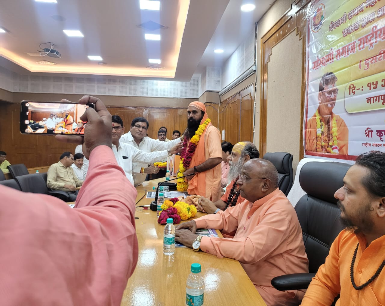 आज अखिल भारतीय गोस्वामी महासभा सम्मेलन राष्ट्रीय अधिवेशन नागपुर में मुख्य अतिथि के रूप में पूज्य गुरुदेव श्रीमहन्त नारायण गिरि जी महाराज श्री दूधेश्वर पीठाधीश्वर गाजियाबाद अन्तर्राष्ट्रीय प्रवक्ता श्रीपंचदशनाम जूना अखाड़ा , उपस्थिति होकर सम्मिलित हुये महाराज श्री के साथ महन्त इच्छा गिरि जी तुल्जा भवानी मन्दिर महाराष्ट्र ,अखिल भारतीय गोस्वामी सभा दिल्ली के अध्यक्ष सच्चिदानंद गिरि जी उपस्थिति हुये ,आज रविभवन नागपुर में गोस्वामी सभा की चिंतन बैठक हुई जिसमें कुछ विषयों पर चिन्तन हुआ ,