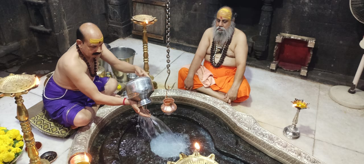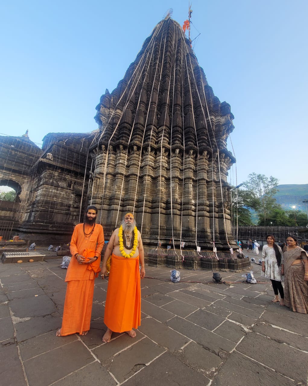 साथ सायंकाल पूज्य महाराज श्री ने द्वादश ज्योतिर्लिंगों में से एक त्र्यंबकेश्वर महादेव के सांयकाल श्रृंगार आरती से पूर्व अभिषेक पूजन किया , त्र्यंबकेश्वर महादेव के पुरोहित उल्हास आराधी हरिओम पंडित जी ने पूजन अभिषेक करवाया साथ ही पूज्य गुरुदेव ने संन्ध्या आरती में भाग लिया महाराज श्री के साथ श्री मां तुल्जाभवानी मठ के महन्त इच्छा गिरि जी सोलापुर महाराष्ट्र भी उपस्थित थे , महाराज श्री कल श्रीमहन्त सागरानन्द सरस्वती जी महाराज श्रीपंचायती आनन्द अखाड़ा जो कि 8 अक्टूबर को ब्रह्मलीन हो गये थे ,उनका षोड़शी भण्डारा कल 23अक्टूबर को उनके षोडशी भण्डारा में पूज्य गुरुदेव की उपस्थिति रहेगी ,त्र्यंबकेश्वर महादेव मन्दिर संक्षिप्त इतिहास:
