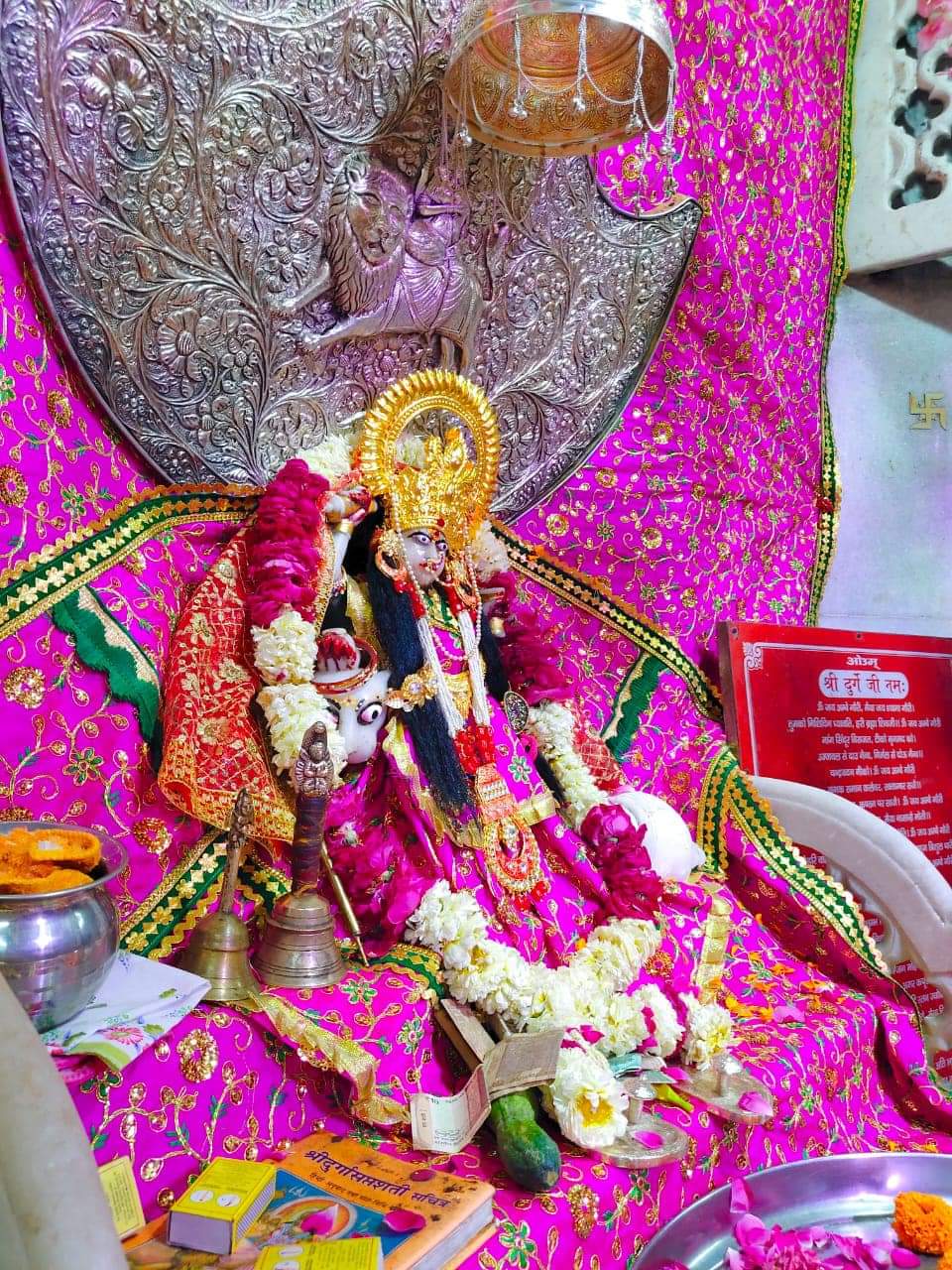 आज चतुर्थ दिवस पूजन पाठ जाप हवन आचार्य डा कैलाश नाथ तिवारी जी के नेतृत्व में आचार्य तोयराज उपाध्याय जी , आचार्य विकास पाण्डेय जी सहित अन्य ब्राह्मणों ने चतुर्थ नवरात्र मां कुष्मांडा स्वारूप पूजन करवाया ,इसके साथ ही पूज्य गुरुदेव के अध्यक्षता में अन्य 6 स्थानों पर भी मां भगवती के चतुर्थ स्वारूप पूजन सम्पन्न हुआ जिसमें श्री दूधेश्वर नाथ महादेव मठ मन्दिर गाजियाबाद उत्तर प्रदेश में पूज्य गुरुदेव की अध्यक्षता में दूधेश्वर मन्दिर विकास समिति के अध्यक्ष धर्मपाल गर्ग जी श्रीमति गिन्नी गर्ग जी उपाध्यक्ष अनुज गर्ग जी के संयोजन में आचार्य नित्यानंद जी द्वारा पूजन हुआ साथ ही दूधेश्वर वेद विद्यालय संस्थान में भी नित्यानंद जी एवं दूधेश्वर वेद विद्यालय के विद्यार्थियों द्वारा पाठ हुआ ,प्राचीन मठ दूधेश्वर मठ की शाखा श्री बालात्रिपुरा सुन्दरी देवी मठ मन्दिर में महन्त गिरिशा नन्द गिरि जी की आयोजन में आचार्य अनिल पाणी जी ,आचार्य निलमणी जी एवं अन्य ब्रह्माणो द्वारा पाठ पूजन हुआ ,मलाणी की पावन धरा पर विख्यात राणी भटियाणी माता मन्दिर जसोल धाम में ,रूपांदे जी में मल्लीनाथ जी में राव किशन सिंह जी ,कुंवर हरिश्चन्द्र सिंह जी के संयोजन में आचार्य मुकेश शुक्ल जी के नेतृत्व में चतुर्थ दिवस पूजन पाठ हवन महाराज श्री की अध्यक्षता में चतुर्थ स्वारूप मां कुष्मांडा का पूजन सम्पन्न हुआ ।